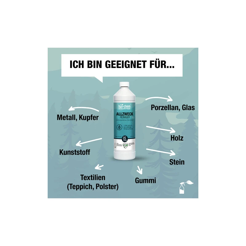 Der Allzweckreiniger ist vor allem in der Küche bei Fettverschmutzungen ein wahrer Erfolgsgarant. Egal ob für den Fettfilter der Dunstabzugshaube, in der Mikrowelle oder im Backofen. Mit dem bio-chem Allzweckreiniger entfernst Du dank der hohen Fettlösekraft fettige Beläge durchs Kochen oder Braten. Das Reinigungsmittel ist somit die optimale Alternative zu umweltschädlichen, herkömmlichen Putzmittel.