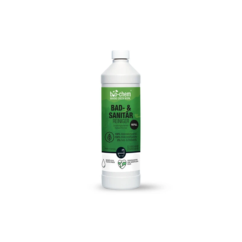 Nutze den bio-chem Bad & Sanitärreiniger, wenn du keine Lust auf scharfe Gerüche von umweltschädlichen Chemiekeulen hast und Dir trotzdem kraftvolle und hygienische Sauberkeit in deinem Bad wünschst.