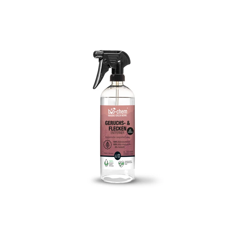 Der bio-chem Geruchs- und Fleckentferner besitzt eine geniale 2 in 1 Kombination. Er wirkt auch dann noch, wenn es zu spät scheint und Du Dein Sofa, Teppich oder deine Schuhe womöglich bereits aufgegeben hast. Das Mittel neutralisiert den unangenehmen Geruch von dem Urin deiner Lieblinge und hinterlässt nach der Anwendung einen nicht aufdringlichen Apfelduft und keinerlei Verfärbungen an den Textilien.