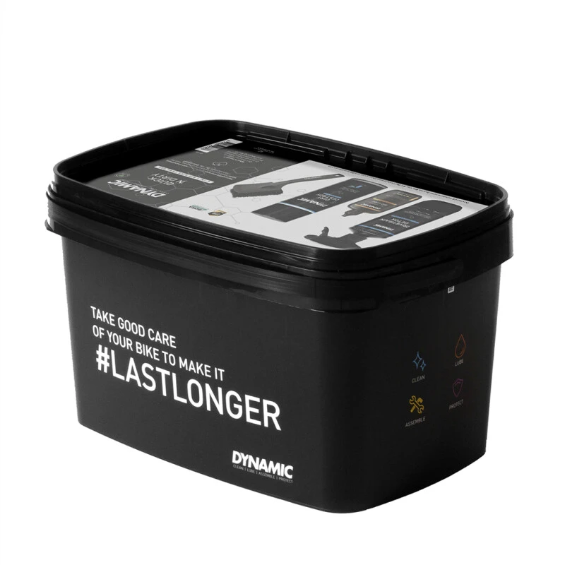 Reinige dein Fahrrad superschnell und einfach mit dieser Bio-Fahrradpflegebox. Beseitige den gesamten Schmutz mit Dirt Destroy, reinige deinen Antriebsstrang mit Drivetrain Detox und schmiere die Kette mit Bio Allround Lube. Die Box enthält die beliebte Dynamic Soft washing brush.Was ist drin?Dirt Destroy (400ml),Drivetrain Detox (500ml),Bio All round lube (100ml),Soft Washing Brush.Dirt Destroy:Der Dirt Destroy Schaumspray wurde entwickelt um dein komplettes Fahrrad (auch Kette, Kassette und Kurbel), mit oder ohne Wasser (E-Bike-Safe) zu reinigen und ist zudem biologisch abbaubar. Einfach sprühen, waschen und fertig.Bio Drivetrain Detox:Dieser Reiniger entfernt schnell und sicher Verschmutzungen, Öl, Wachs und Fett. Die umweltfreundliche Formel lässt sich leicht mit Wasser abspülen und ist der einzige Reiniger seiner Art, der keinerlei Gefahrensymbole aufweist!Bio All round Lube:Das Dynamic Bio All round Lube ist ein qualitativ hochwertiges Schmiermittel, welches Reibung in deinem Antriebssystem reduziert und Schaltvorgänge geschmeidiger macht. Seine ausgefeilte Rezeptur ist darüber hinaus optimiert worden, um bewegliche Teile gegen Wasser und Rostbildung zu schützen.Soft washing brush:Die sanfte Reinigungsbürste ist ideal zum Reinigen deines Fahrradrahmens und deiner Komponenten. Die spezifische Borstenstruktur der weichen Waschbürste ist für alle Bikes und Rahmenmaterialien geeignet. Diese Bürste ist für eine schnelle Reinigung konzipiert.