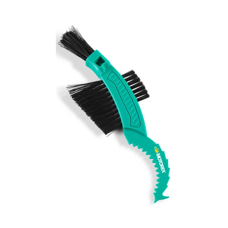Reinigungsbürste optimiert für Kassette, Kettenräder, Kette und Umwerfer. Die optimale Ergänzung zu den Clean & Care Produkten von Motorex. Die Bürste wird mit „Karton-Hangtag“ ausgeliefert, um an Verkauswänden platziert werden zu können.