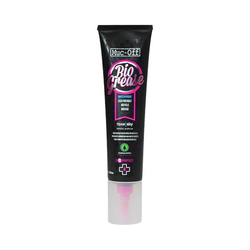 Das „Bio-Grease“ wurde von Muc-Off speziell für den Gebrauch an Fahrrädern entwickelt. Das biologisch abbaubare Lagerfett eignet sich für sämtliche beweglichen Teile am Rad. Die spezielle Formel sorgt für eine gute Schmierung der Lager und vermindert die Reibung der Teile für einen leisen und sanften Lauf, z.B. beim Steuersatz und Innenlager. Ausserdem verhindert es das Eindringen von Wasser und schützt das Material so effektiv vor Korrosion und Verschleiss. Es ist vollständig biologisch abbaubar und frei von schädlichen petroleumhaltigen Ölen.