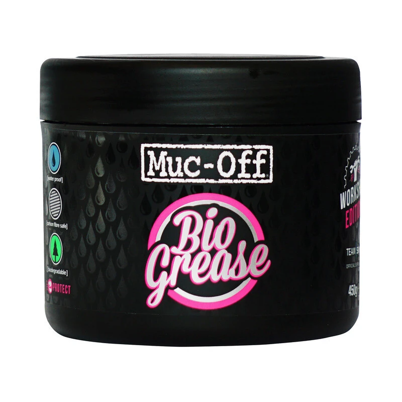 Das ?Bio-Grease? wurde von Muc-Off speziell für den Gebrauch an Fahrrädern entwickelt. Das biologisch abbaubare Lagerfett eignet sich für sämtliche beweglichen Teile am Rad. Die spezielle Formel sorgt für eine gute Schmierung der Lager und vermindert die Reibung der Teile für einen leisen und sanften Lauf, z.B. beim Steuersatz und Innenlager. Ausserdem verhindert es das Eindringen von Wasser und schützt das Material so effektiv vor Korrosion und Verschleiss. Es ist vollständig biologisch abbaubar und frei von schädlichen petroleumhaltigen Ölen.