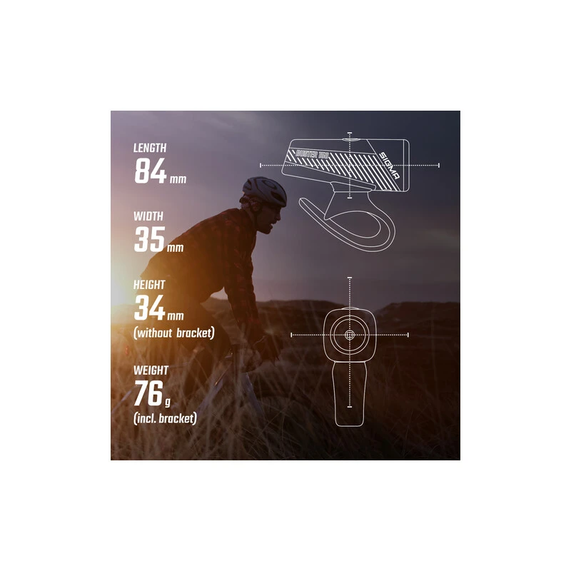 Die kleinste und leichteste Powerleuchte von SIGMA mit 150 Lumen und 74 Meter Leuchtweite bringt gerade einmal 76 Gramm auf die Waage