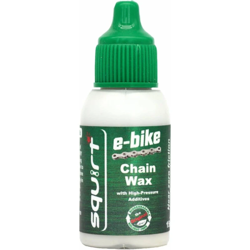 Squirt E-Bike Kettenwachs ist das, was sich jeder E-Biker wünscht: ein langanhaltendes Schmiermittel, das keinen Schmutz ansetzt. Basierend auf unserer bewährten Wachs-Wasser-Emulsionstechnologie mit zusätzlichen Hochdruck-Reibungsmodifikatoren speziell für Hochleistungsanwendungen in E-Bike-Antriebssträngen. Es verlängert die Lebensdauer Ihres Antriebsstrangs, indem es die Reibung verringert, das Schalten verbessert und störende Geräusche der trockenen Kette reduziert.